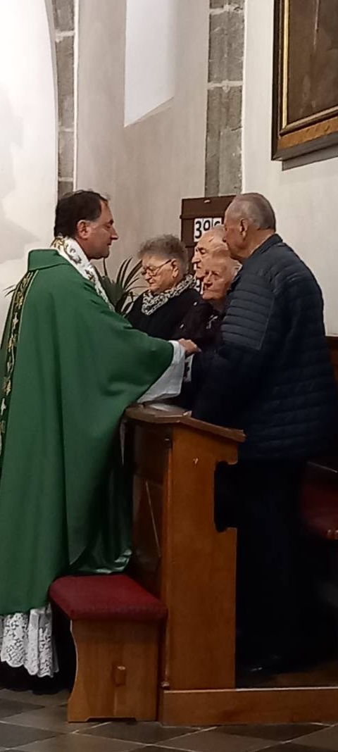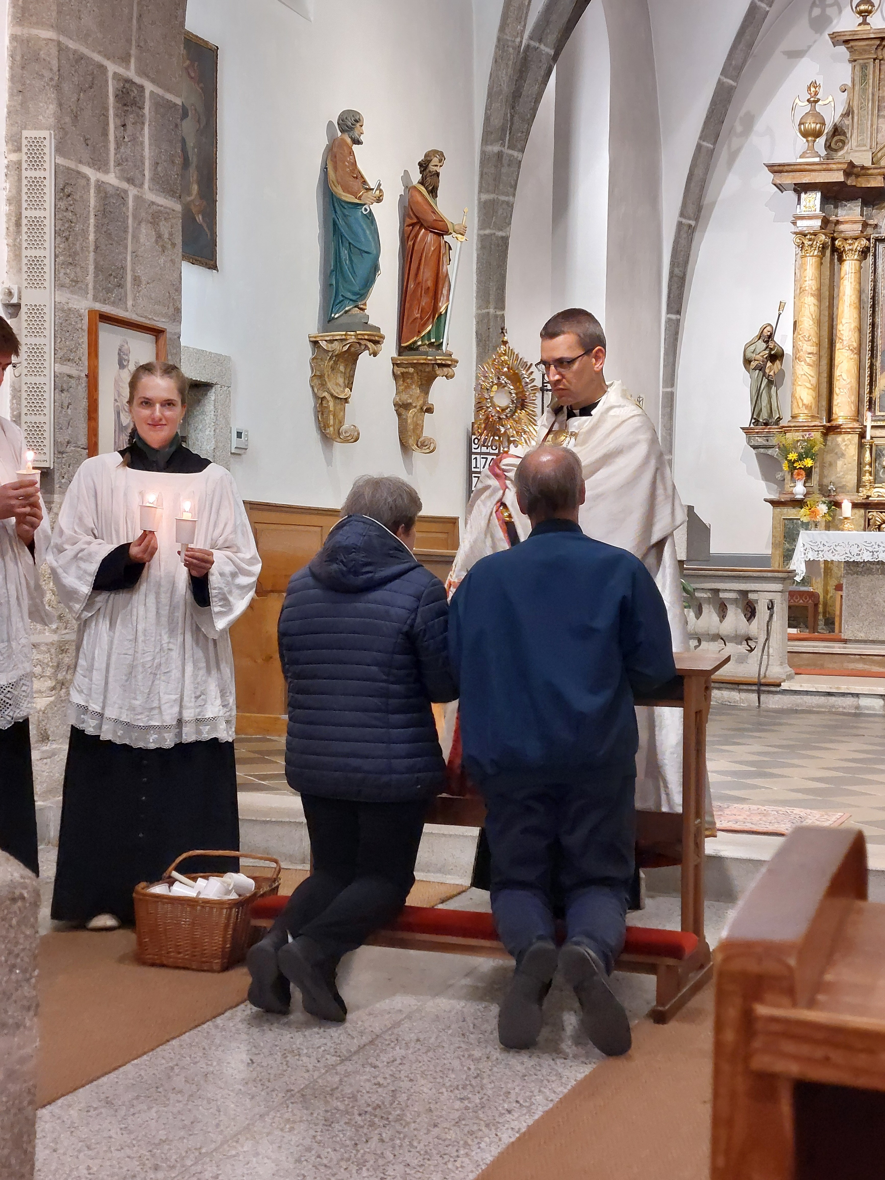 Die ganze Großfamilie war anwesend, sowie die Geistlichen Pfr. Thomas Skrianz, P. Peter Maria Jelinek, Fr. Ignatius und natürlich zur großen Freude von Oma und Opa der Enkelsohn Fr. Augustinus (Matthias), der bei der Jubiläumsmesse seiner Großeltern den Ministranten- und Lektorendienst übernahm.