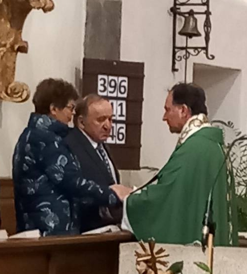 Eine große Überraschung und Freude war es für das Jubelpaar, dass Pfr. Thomas ihren Wunsch erfüllte und als Schlusslied das Ave Maria von der Chorempore sang.