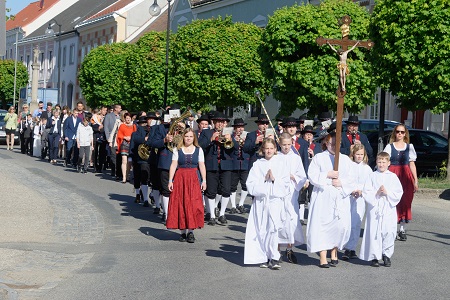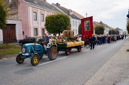 Traditionell verlief auch heuer wieder das Erntedankfest in unserer Pfarrgemeinde. Unser Pfarrer segnete am Kirchenplatz die Erntekrone, bevor sich de Festzug zum Gemeindezentrum bewegte, wo der Festgottesdienst gefeiert wurde. Die Kinder des Kindergartens brachten mit Liedern die Erntegaben zum Altar und die Kinder der Volksschule gestalteten mit Texten ebenfalls die Messe. Die Blasmusik Thaya sorge für die musikalische Gestaltung der Messfeier. Die Ortsgemeinschaft Thaya gestaltete den Erntewagen sehr kreativ und mit viel Liebe.
