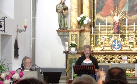 Danach folgte als besonderer akustischer Hochgenuss ein Konzert das von Martina Neidhart – Gesang – und Wolfgang Eder an der Orgel gestaltet wurde. Die Ave Maria von Schubert und von Bach standen am Anfang und am Ende des Konzerts. Dazwischen sang Martina Neidhart Musical-Ohrwürmer wie Memory, My Way und andere mit religiösen Texten die auch zum mitlesen aufgelegt waren. Bewährter Moderator war Pfarrer Wolfgang Auhser.