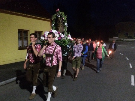 Auch heuer lud die Pfarre Thaya in der “Langen Nacht der Kirchen” zur Wallfahrt zur Thayigner Madonna am Freitag, den 25. Mai 2018 ein. Nach dem Empfang der Fußpilger bei der Florianimarter und dem feierlichen Einzug in die Kirche zelebrierte Pfarrer Wolfgang Auhser die Festmesse. Hernach wurde die festliche geschmückte Statue der Thayinger Madonna in einer Lichterprozession von vier Jugendlichen durch den Markt getragen. Der stimmungsvolle Umzug, bei dem abwechselnd gebetet und gesungen wurde führte erst zur Aufbahrungskapelle - der ehemaligen Bürgerspitalskapelle – wo diese Statue einige Jahrhunderte hindurch verehrt wurde. Nach der Gebetsrast führte die Prozession weiter in die Pfarrkirche wo mit dem Schlusssegen der erste Teil abgeschlossen war.