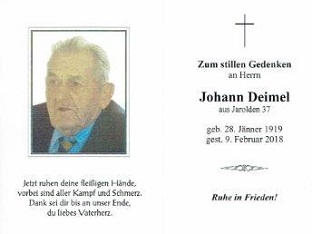 20.02.2018: Deimel Johann, Jarolden, 99 Jahre