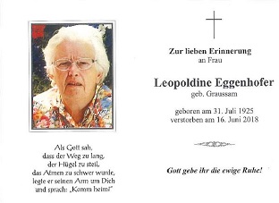 22.06.2018: Eggenhofer Leopoldine, Peigarten, 92 Jahre