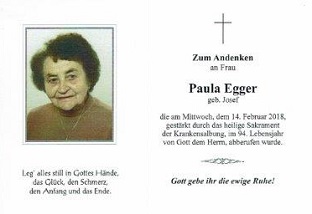 23.02.2018: Egger Paula, Thaya, 94 Jahre