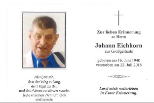27.07.2018: Eichhorn Johann, Großgerharts, 78 Jahre