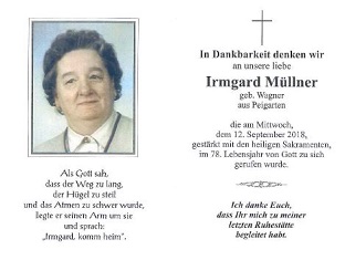 21.09.2018: Müllner Irmgard, Peigarten, 78 Jahre