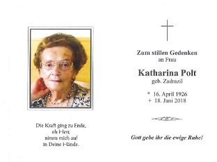 29.06.2018: Polt Katharina, Jarolden, 92 Jahre