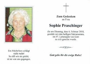 16.02.2018: Praschinger Sophie, Großgerharts, 97 Jahre