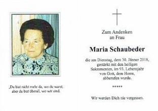 09.02.2018: Schaubeder Maria, 93 Jahre