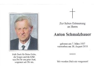 24.08.2018: Schmalzbauer Anton, Peigarten, 81 Jahre
